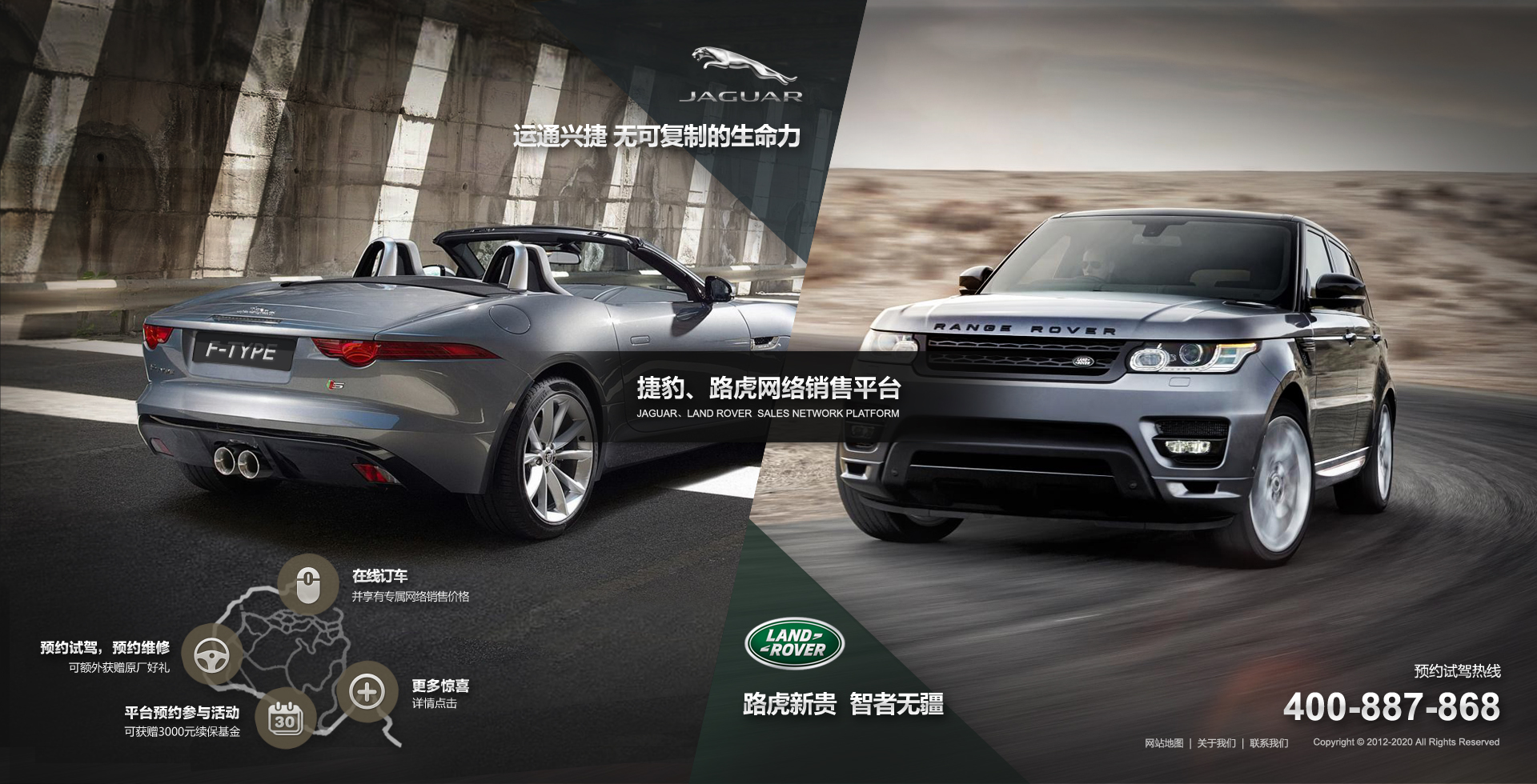 設(shè)計(jì)思路:分形科技承擔(dān)捷豹路虎官網(wǎng)建設(shè)的同時(shí)也注重其互動(dòng)性,通過(guò)一系列的欄目體現(xiàn)了其互動(dòng)性,抓住了路虎捷豹與大眾用戶的利益共同點(diǎn),實(shí)現(xiàn)了網(wǎng)站的預(yù)期效果。