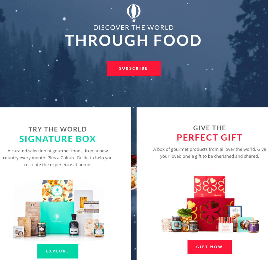 Try the World 創(chuàng)辦的概念有點(diǎn)類(lèi)似于此。創(chuàng)辦人因?yàn)橄矚g旅行和美食,對(duì)于在異國(guó)嘗到的料理常常難以忘懷,便想要在自己的家里重現(xiàn)他們?cè)诼眯袝r(shí)的當(dāng)?shù)刈钕矚g的菜,然而礙于異國(guó)食材在美國(guó)取得不易,于是他們便創(chuàng)辦了Try the World,讓人們可以透過(guò)在家里訂購(gòu)他們?yōu)槟闩渲煤玫漠悋?guó)料理發(fā)現(xiàn)盒,環(huán)游世界的飲食文化。